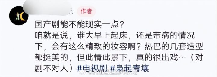 这场看似针对妆容的争论,本质是观众对 " 角色呼吸感 " 的迫切呼唤。社交平台上," 我们要的不是素颜丑,是符合情境的真实 " 成为高赞评论。生病时的虚弱神态、睡醒后的眼角分泌物、奔波后的发丝凌乱,这些曾被经典剧集视为塑造人物必备的细节,如今在过度滤镜和完美妆造中集体蒸发。也有网友吐槽者强调 " 妆容问题非演员能单独决定 ",矛头直指剧组化妆指导和审美体系,呼吁国产剧摆脱 " 过度包装 " 惯性。某知名编剧坦言:" 当演员连摔倒都要保持发型完美时,角色就已经死了。"
